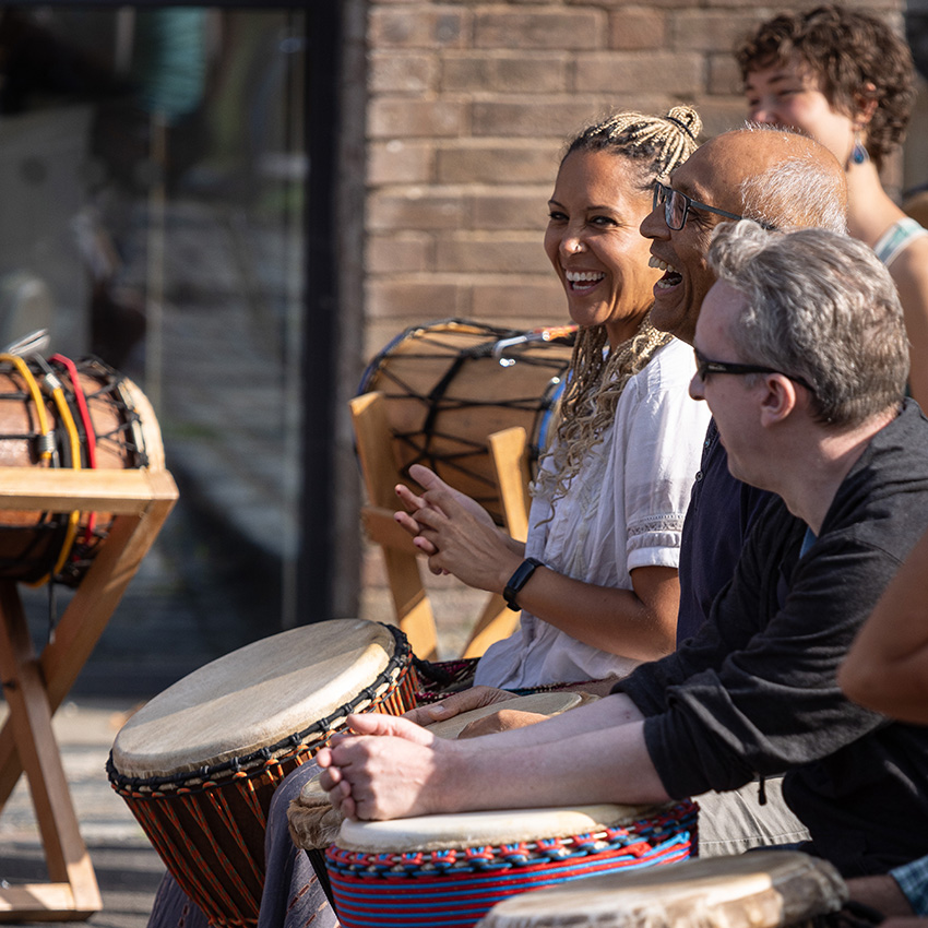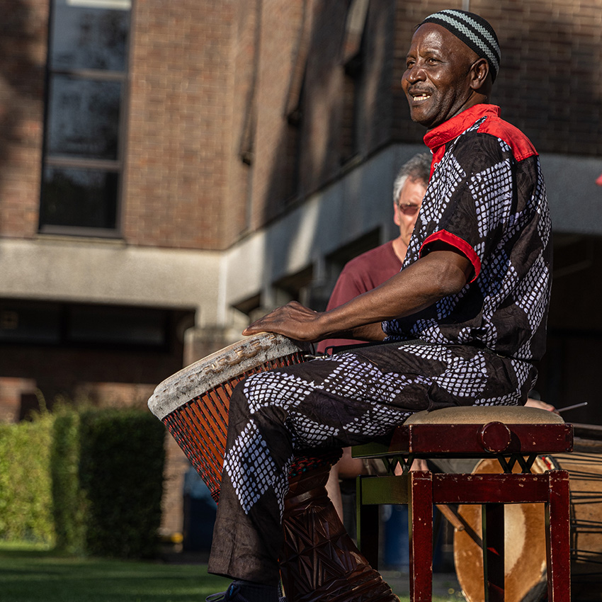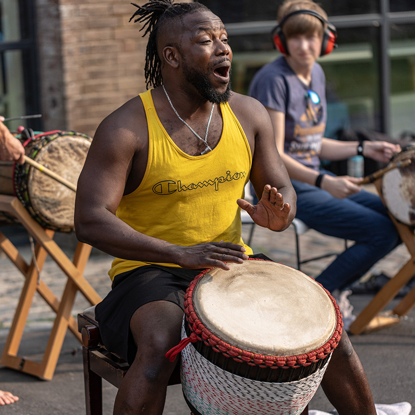 is originally from Ivory Coast and has been living in the UK since 2008. With griot family lineage, Sidiki is a virtuoso musician of djembe, dundun, djely ngoni, kamale ngoni and calabash. His many accolades include a recent USA and Canada tour with Abel Selaocoe, Chesaba and the Manchester Collective and several appearances on BBC CBeebies! Despite being so busy with many diverse collaborations and projects, Sidiki remains dedicated to sharing the djembe and dundun tradition in his energetic classes.
